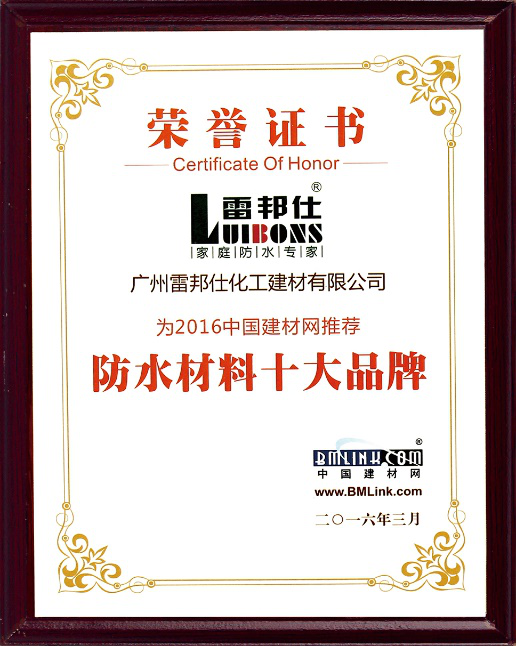 至今,雷邦仕經(jīng)銷渠道覆蓋27個省的200多個城市,全國建設(shè)有200多個專賣店和3000多家經(jīng)銷網(wǎng)點,并遠銷至東南亞、澳大利亞、中東、非洲等地區(qū)。品牌位居“中國防水十大品牌”前列,并先后榮獲“中國購買者首選家居品牌”、“行業(yè)首選推薦品牌”、“中國建材首選品牌”等多項榮譽。