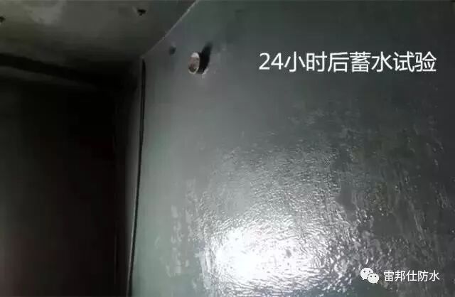 防水層施工完成48小時后,要進行時間不小于24小時的閉水試驗(溫度較低或通風不良時,可適當延遲進行)檢查防水層的施工質量。經檢驗無滲漏后,方可進行后面的施工。