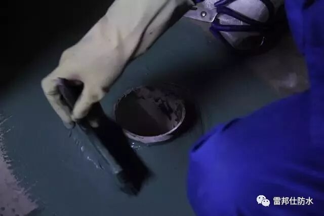 防水涂層一般涂刷2-3遍,且后一遍須待頭一遍涂膜表干不粘手后再涂刷。涂刷步驟得先從收縮率不一致的陰陽角、管根開始,再大面積涂刷,且后面一遍與頭一遍要垂直方向涂刷,確保防水涂料能均勻涂刷于基面,還要防止漏涂。