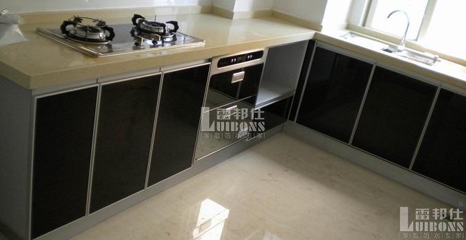廚房防水相對就簡單一點,涂刷一遍防水涂料就可以了,防潮高寬比在30cm,做了防水以后,還要做閉水試驗。餐廳廚房用水量盡管沒有洗手間大,做防水也不可以粗心大意。不銹鋼水槽的部位,防水高寬比保證1.5米,高過廚房洗菜盆,防止水濺。